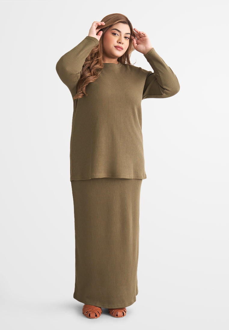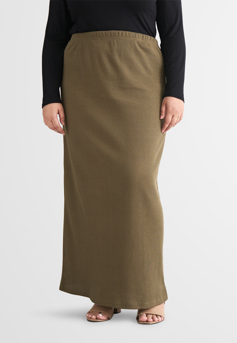 Warina Waffle Straight Cut Skirt - Army Green