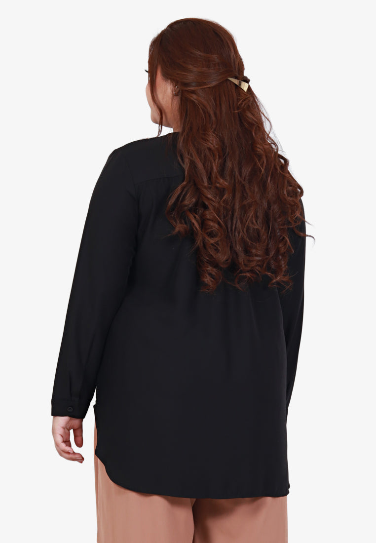 Round neck - Full buttons (hidden) - Long sleeves - Wrist cuff with button