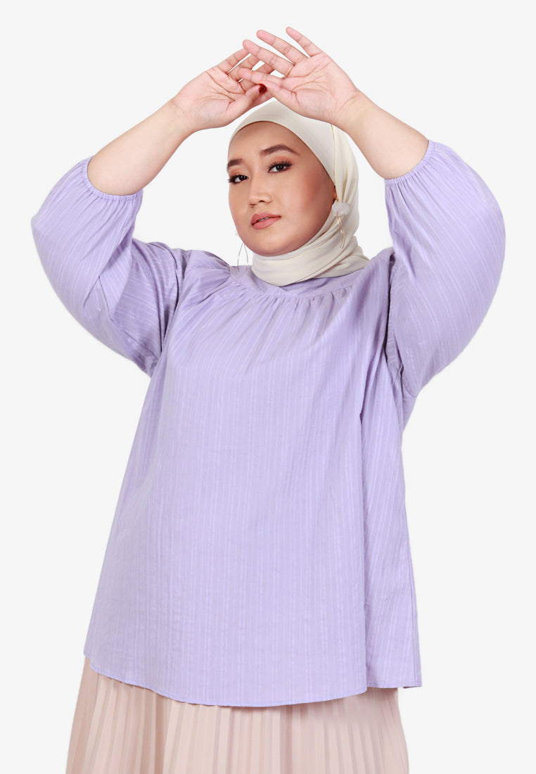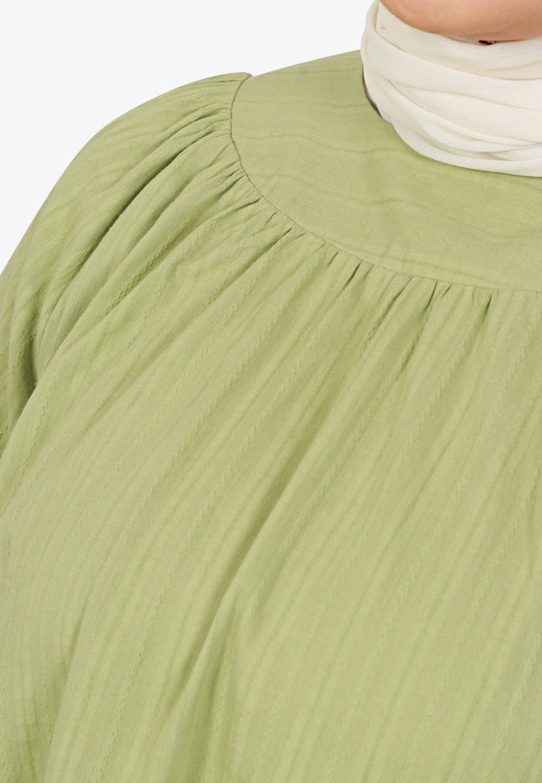 Round neck - 3/4 puff sleeves with elastic wrist - Double back neck button