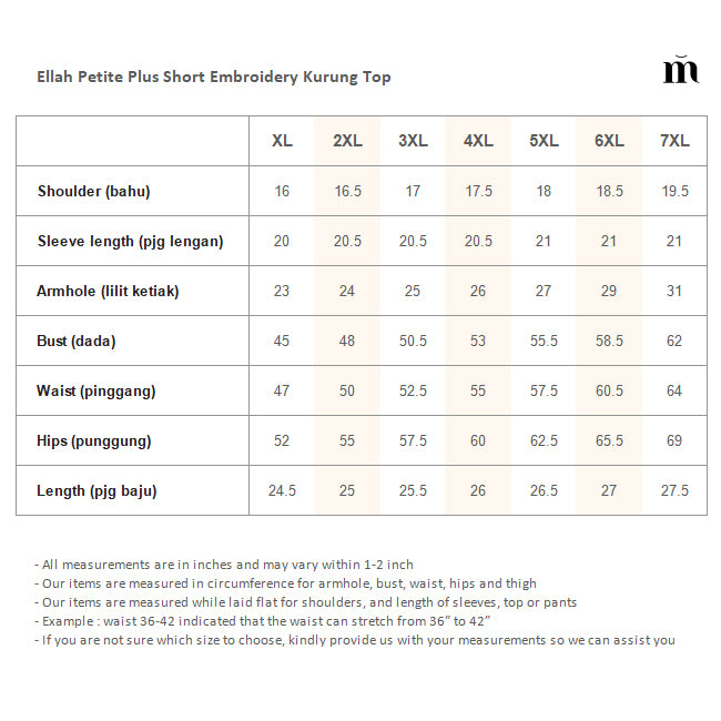 Ellah Petite Plus Short Embroidery Kurung Top - Pink