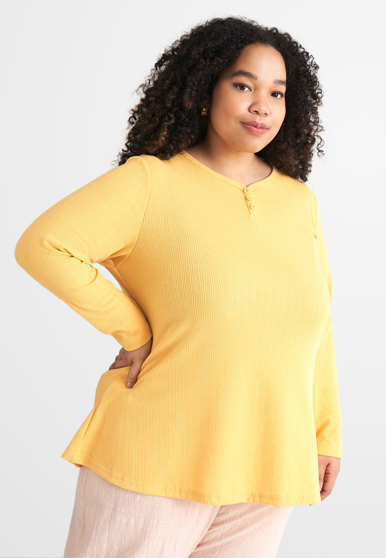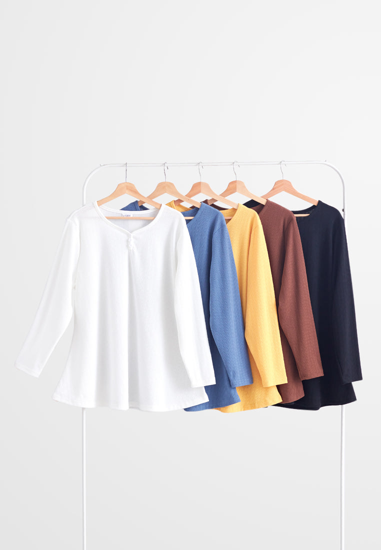 Henley style tees are characterized by its casual short row of buttons in the front - this style has been trending and is great for a relaxed look, whether paired with jeans or pants. We have a fun array of shades, which are perfect for a weekend look.