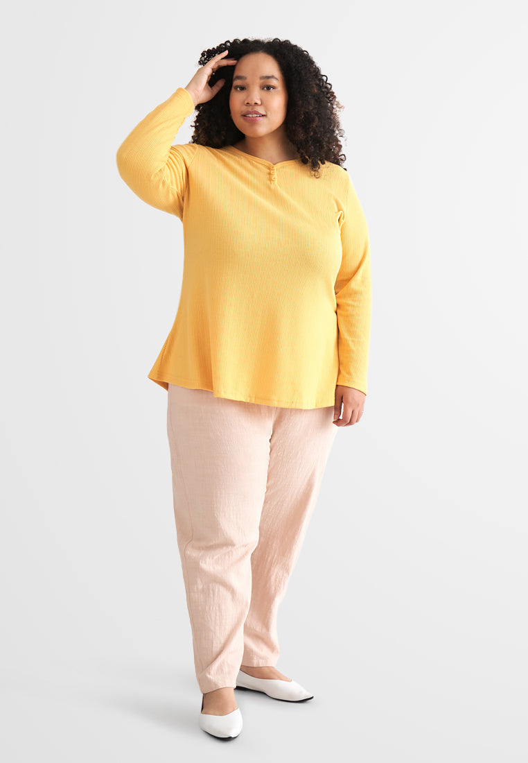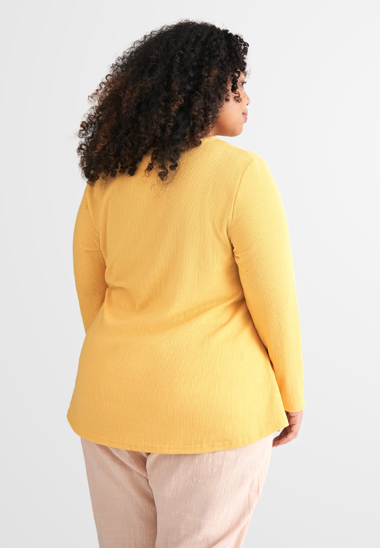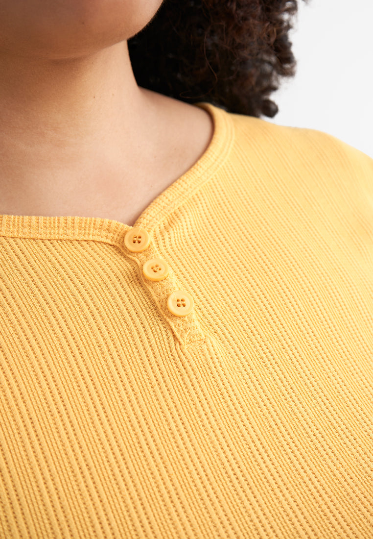Round neck with short row of buttons - Long sleeves - Feminine cut