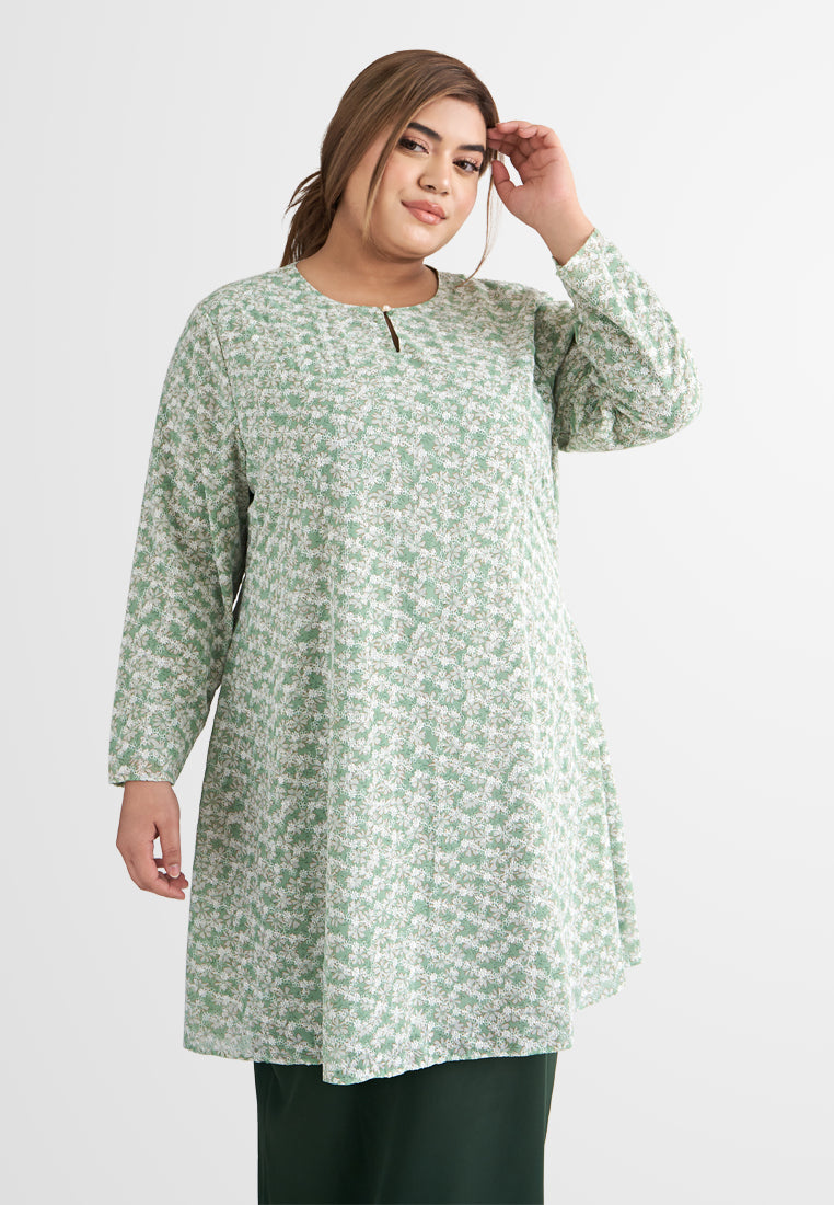 Faerie Floral Embroidery Chiffon Kurung Pahang Set - Green