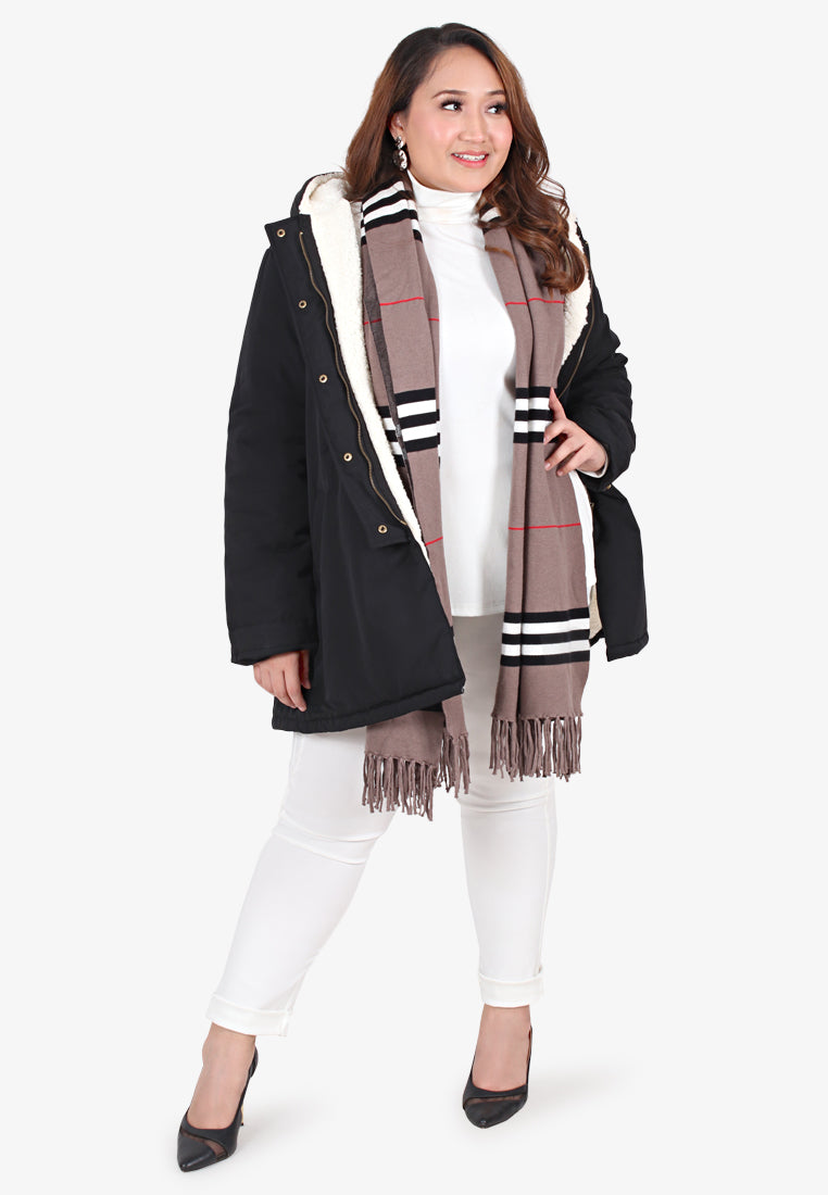 Bronte Burberry-Inspired Print Long Shawl - Brown