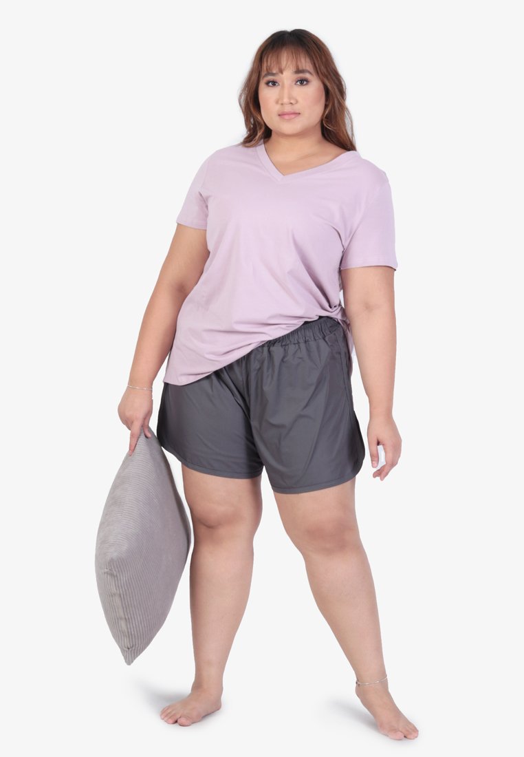 Verra V-neck Short Sleeve Basic Tee - Lilac Pink