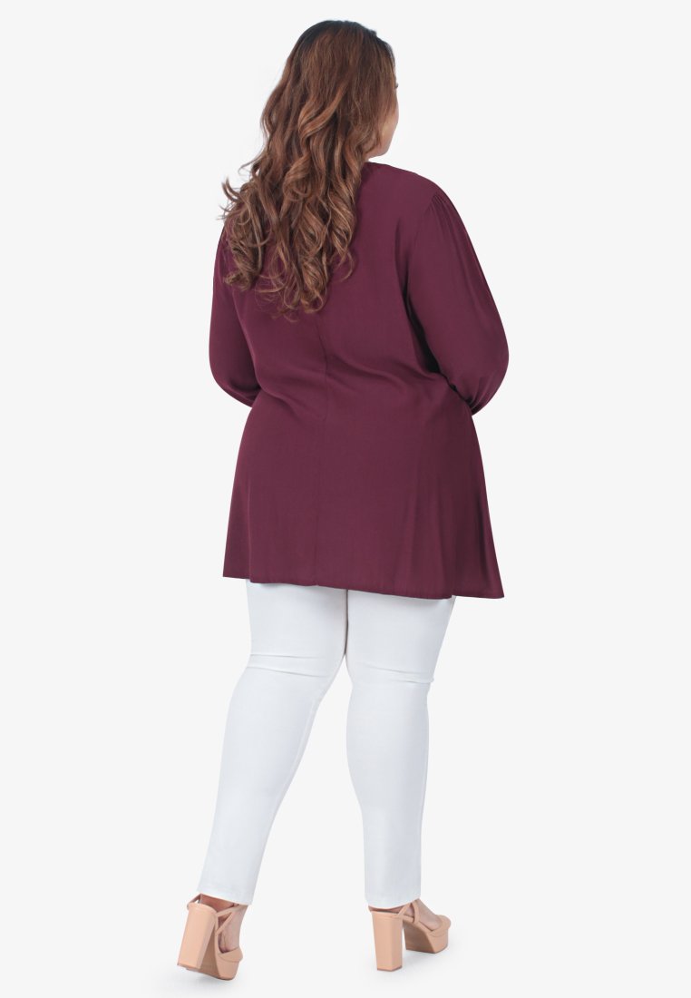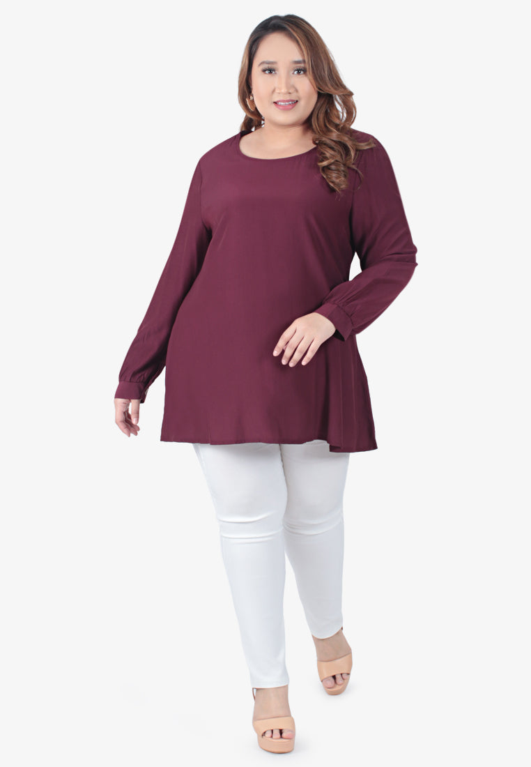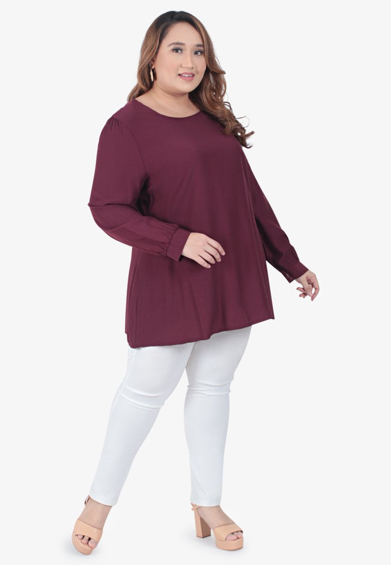 Silvia Elegant Silky Long Sleeve Blouse - Wine