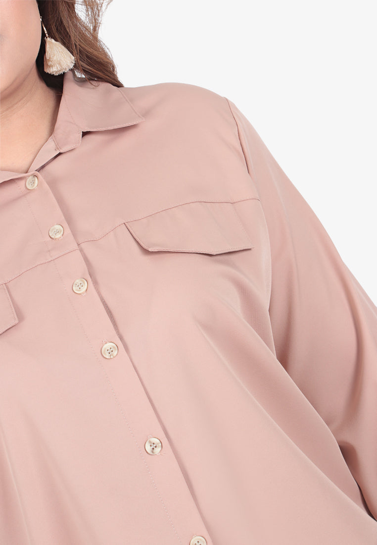 Button up shirt with collar - Two chest flaps to look like pockets - Long sleeves with wrist cuff and button