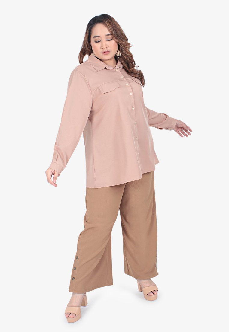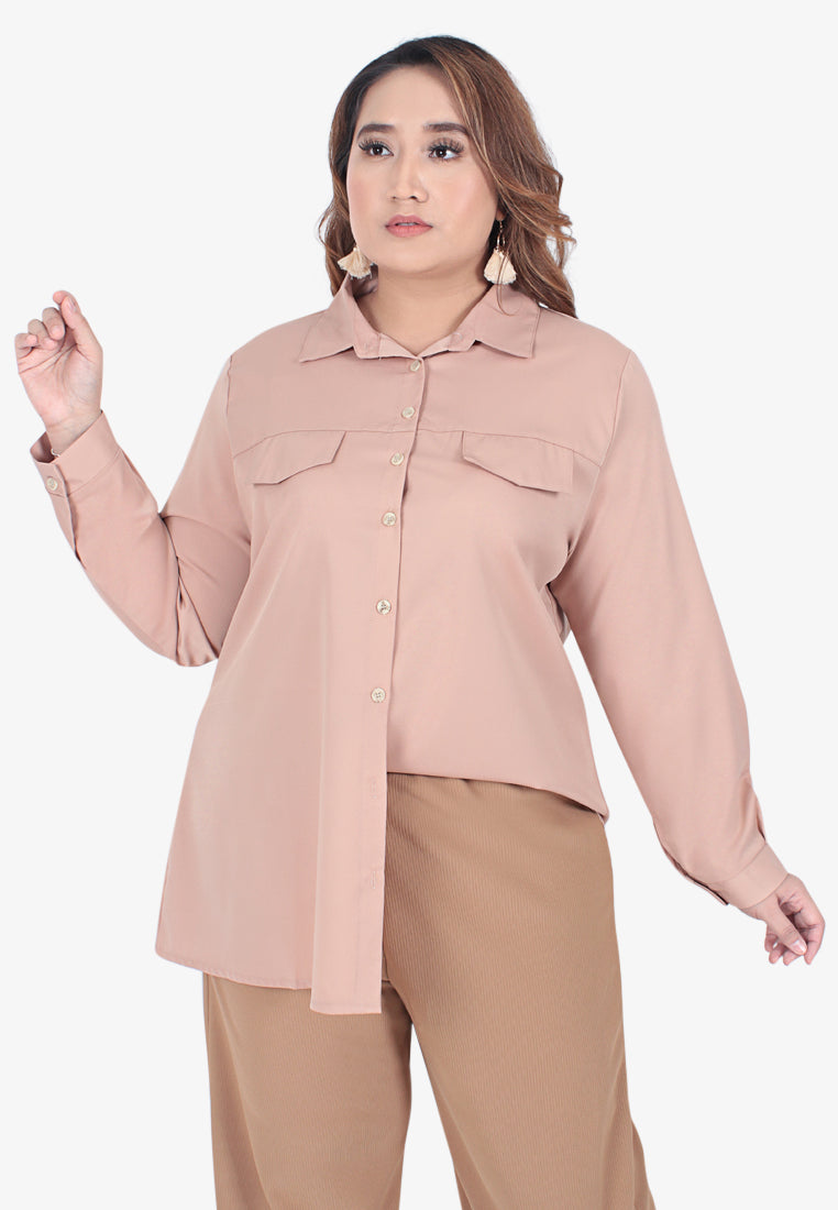 Flapper Faux Double Pocket Collar Shirt - Brown