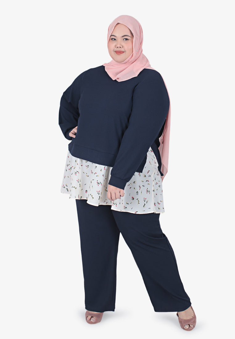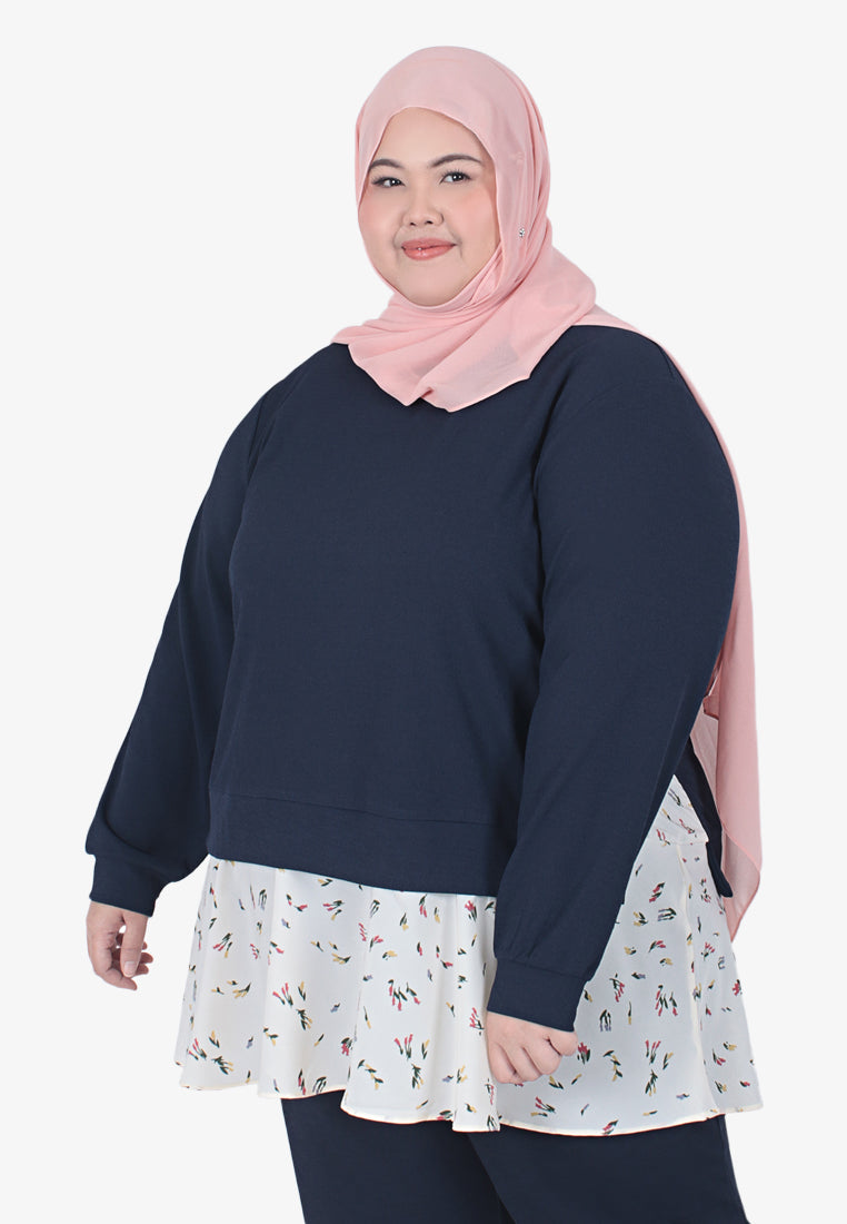 Camila Casual Ribbed Fake Layer Blouse - Navy Blue