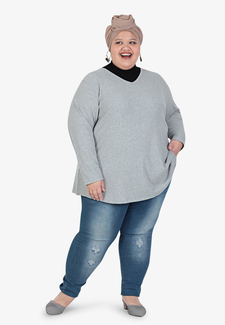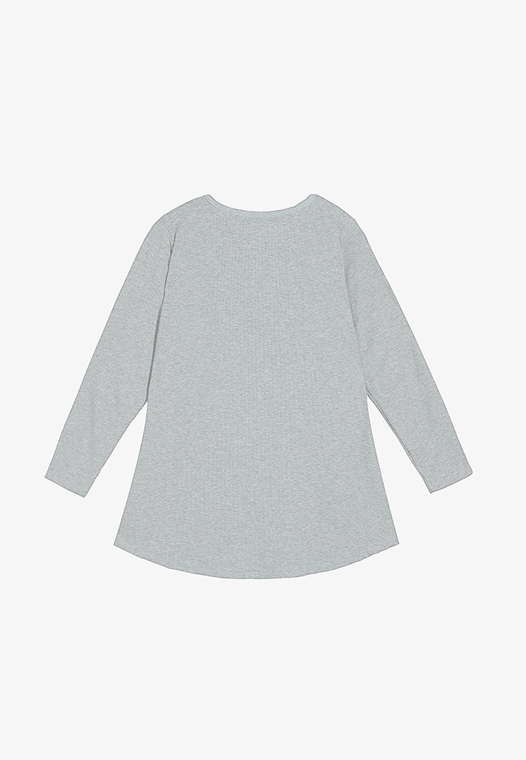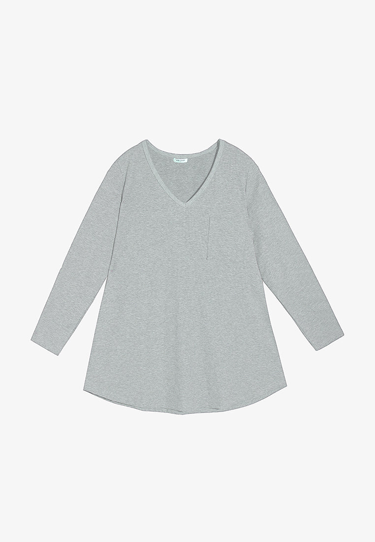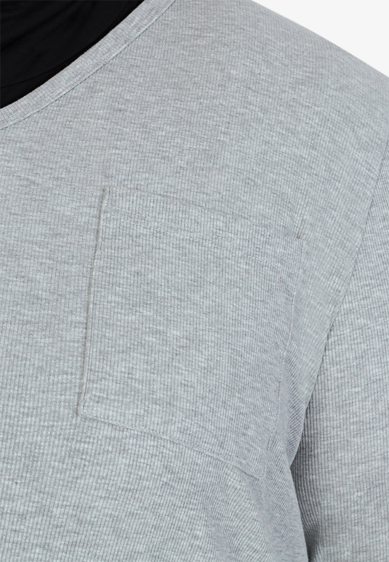 Perdita V-neck Pocket Ribbed Long Sleeve Tee - Grey