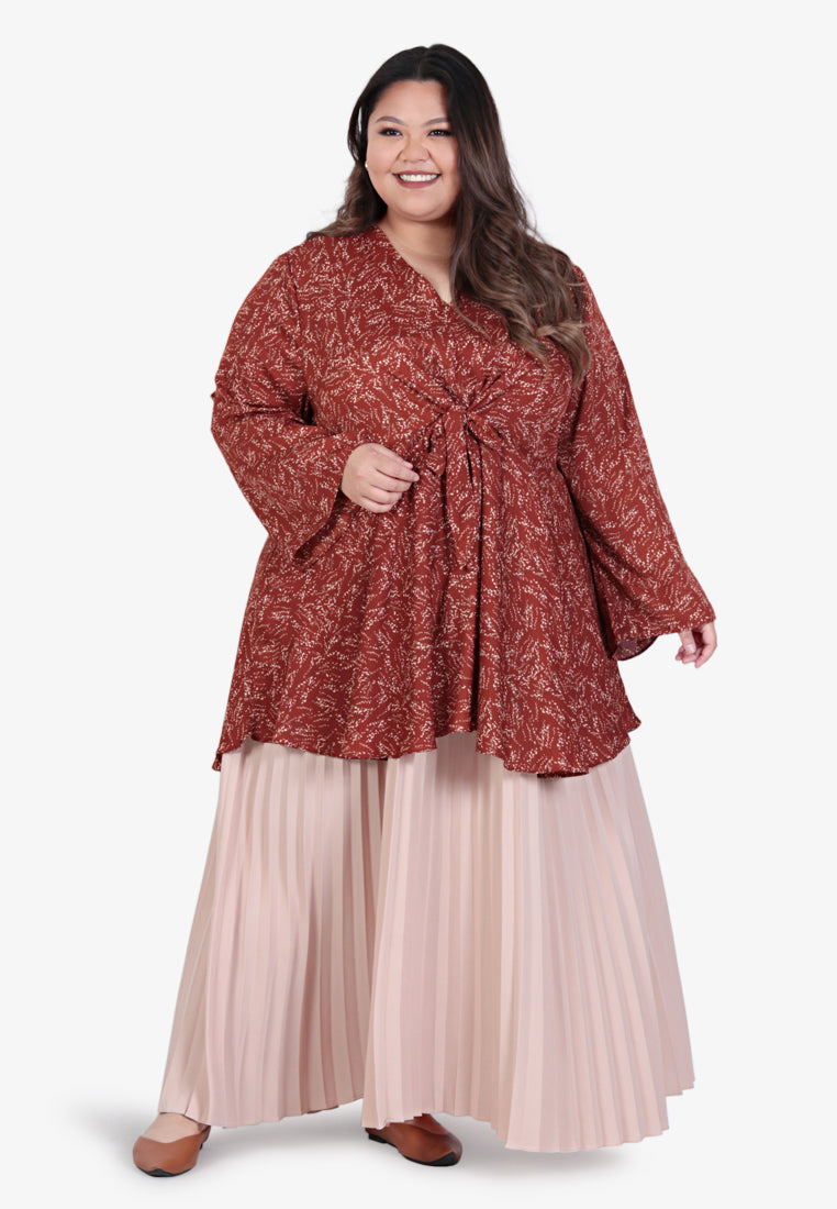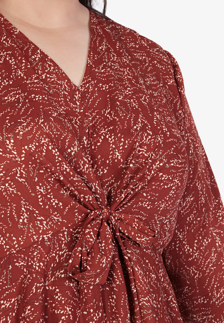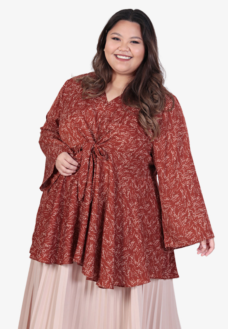 Madonna Tie Front Long Sleeve Blouse - Brick Brown