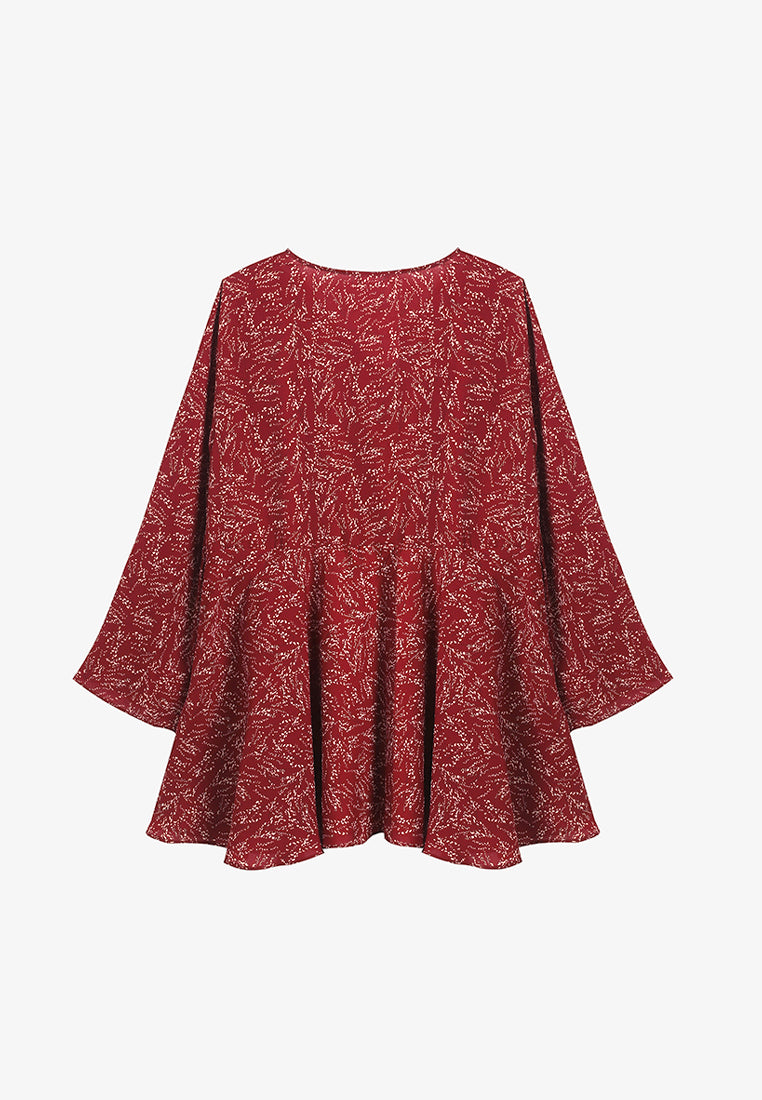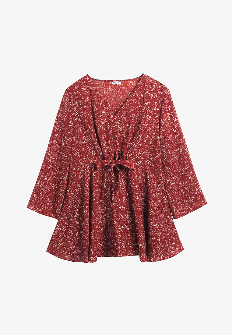 V-neck - Long sleeves - Tie front waist - Flared and flowy hem