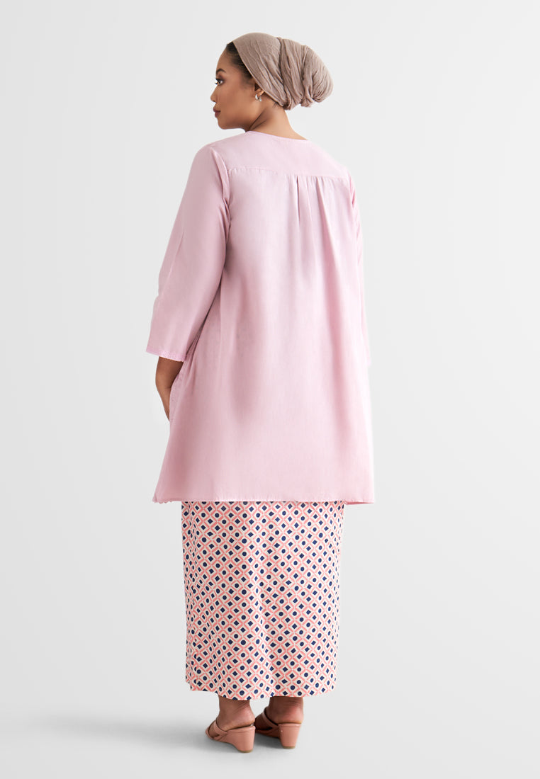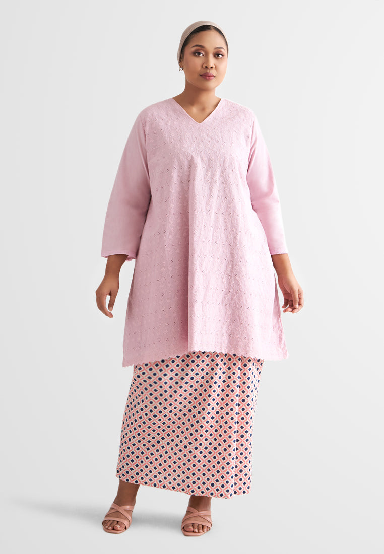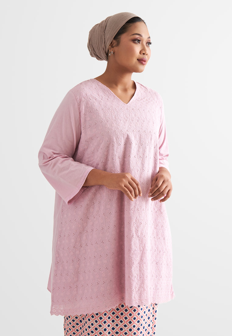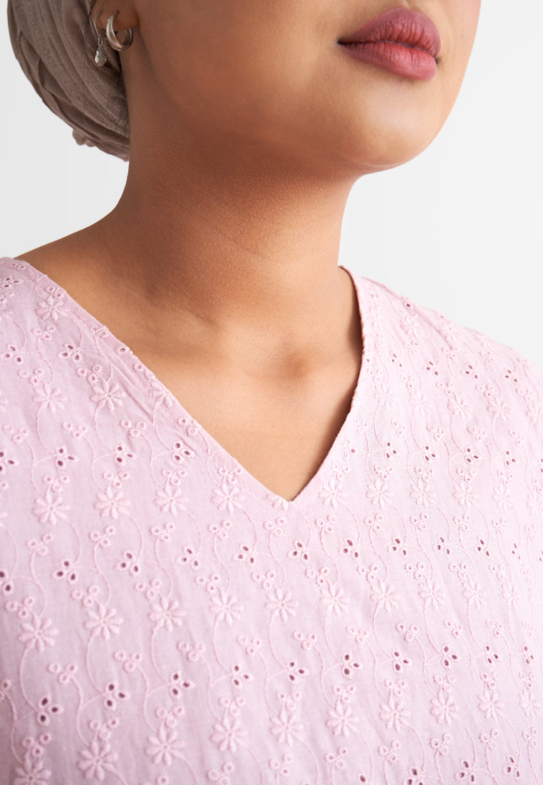 Eiliyah Raya Eyelet Collection Long Kurung Top - Pink