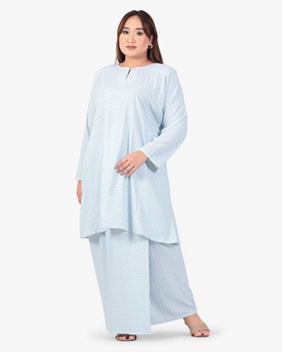 Naqila Raya Motif Prints Kurung Set - Baby Blue