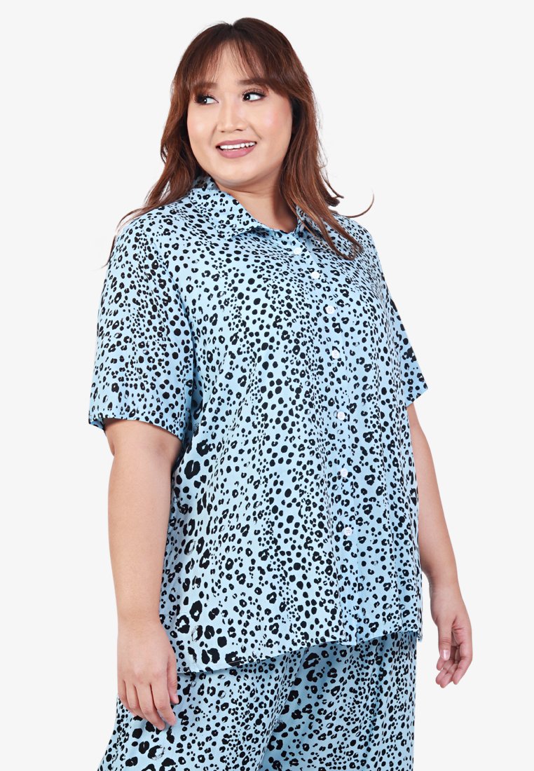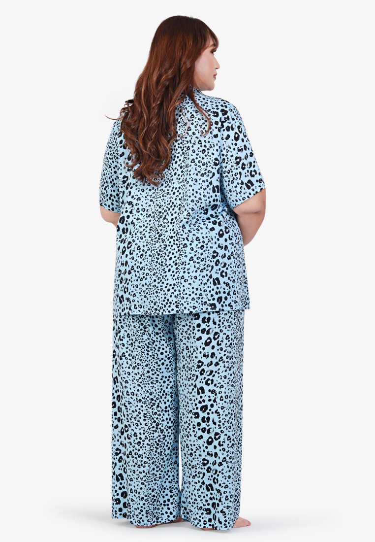 Londi Cotton Rayon Sleepwear Long Pajama Shirt Set - Blue Leopard