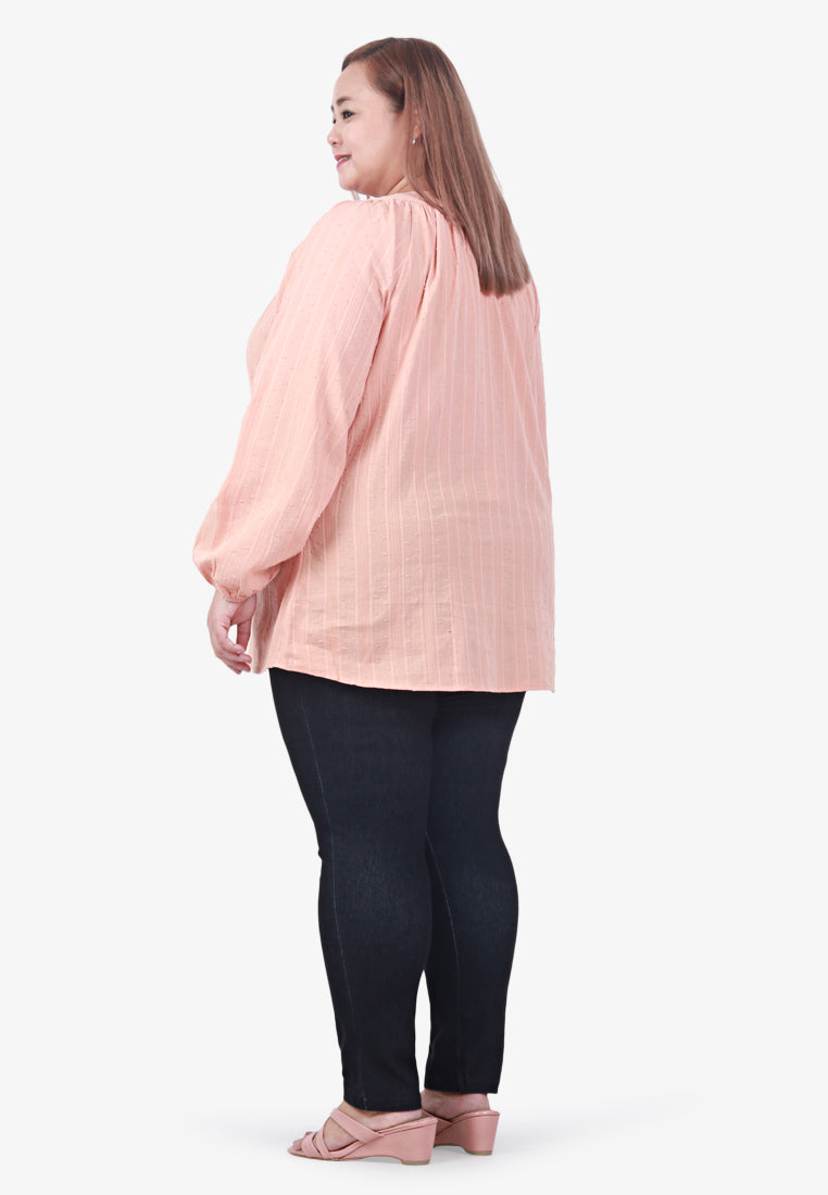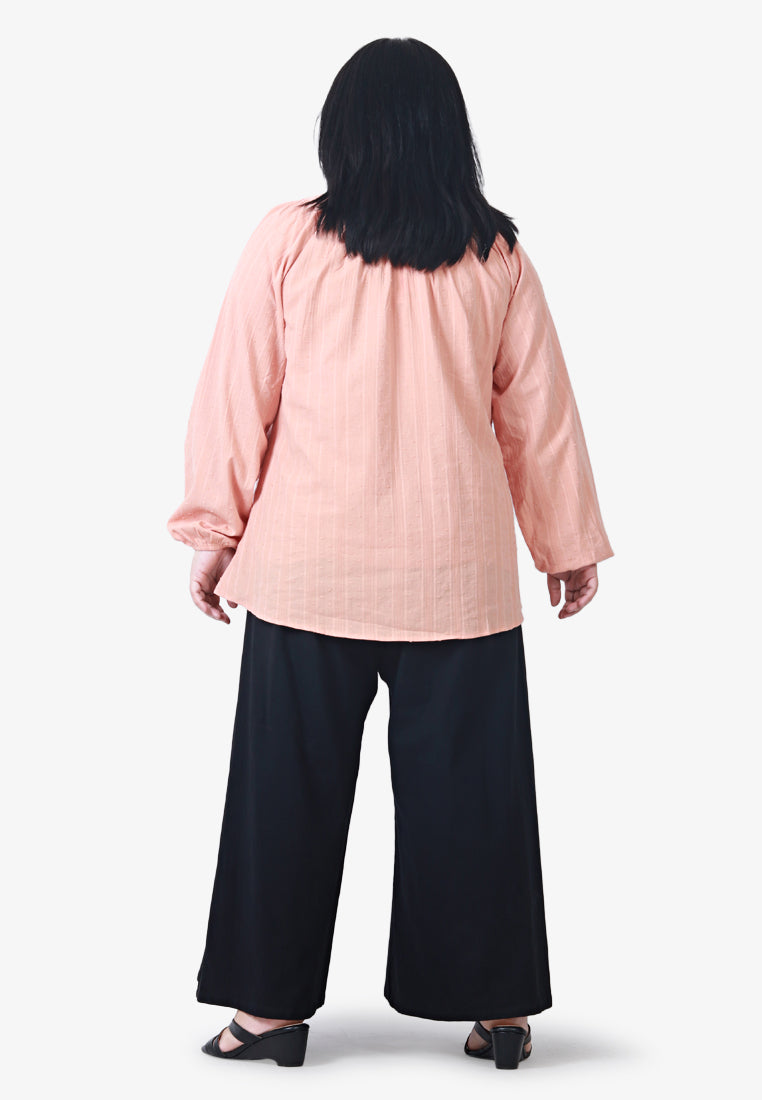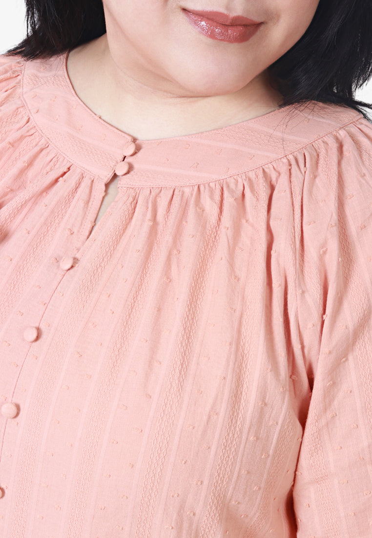 Emsley Mini Pom-Pom Cotton Embroidery Blouse - Peach