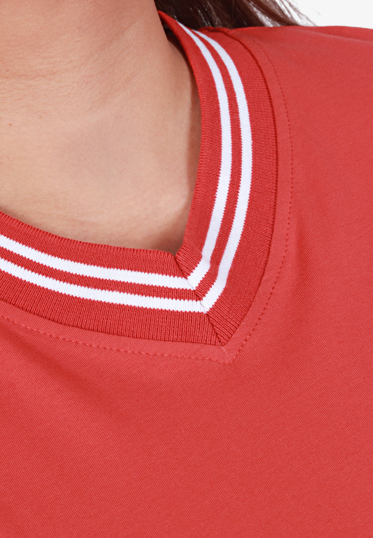 Vachia V-neck Preppy Varsity Jumper Tee - Orange