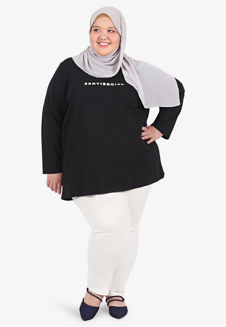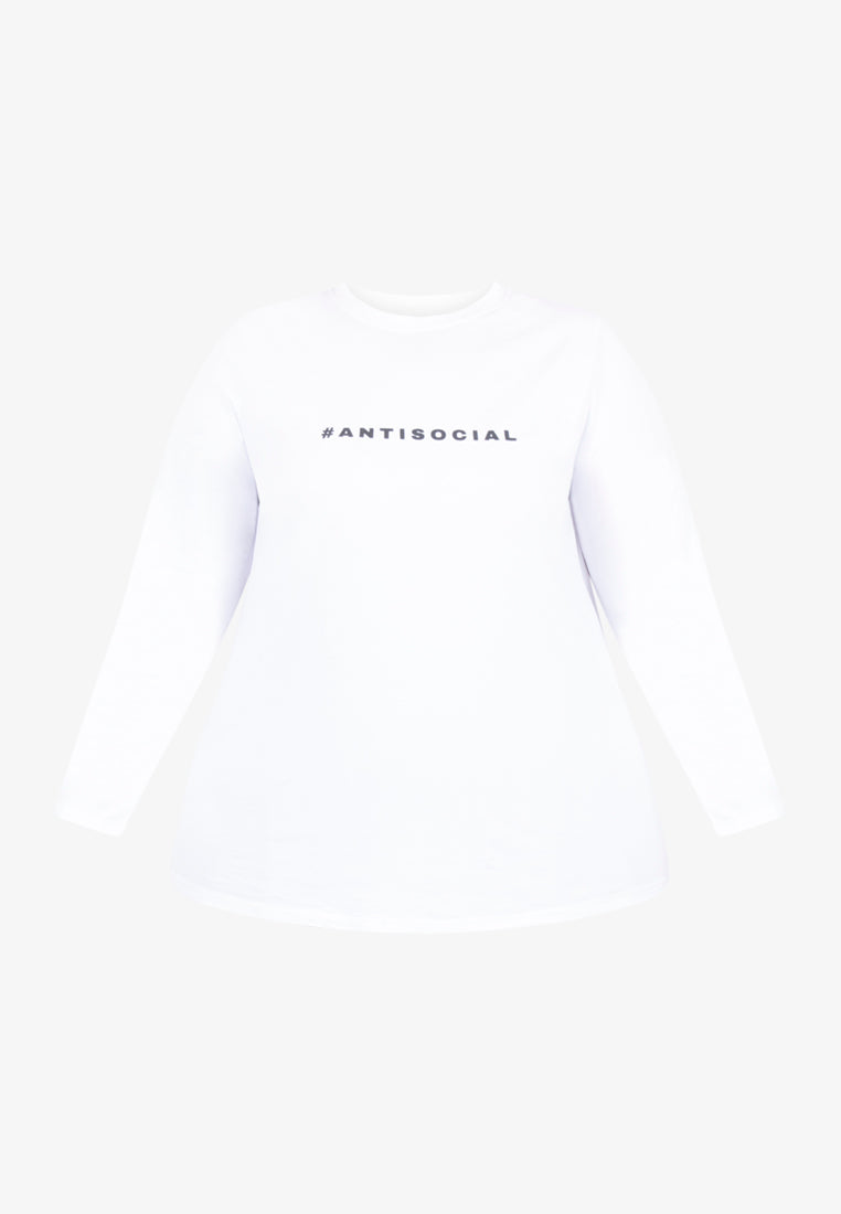 Round neck - Long Sleeves - Statement on t-shirt reads #ANTISOCIAL