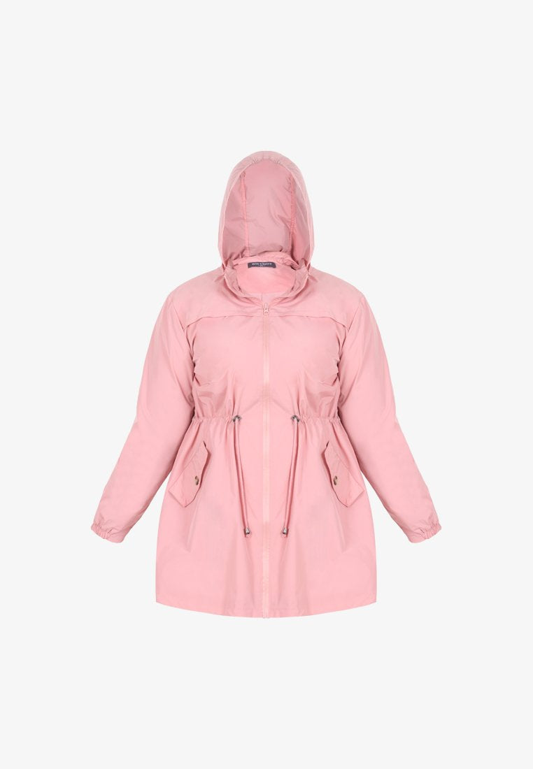 Foldable hood with zip for easy and neat storage - Hood has a small elastic part for better grip - Full zip jacket - Drawstring for cinching the waist for a feminine look - Two front pockets - Cinched elastic wrists - Long sleeves